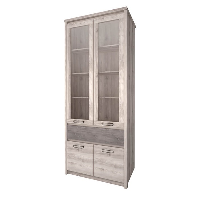 Шкаф с витриной 2V2D1S, JAZZ (Каштан найроби/Оникс)