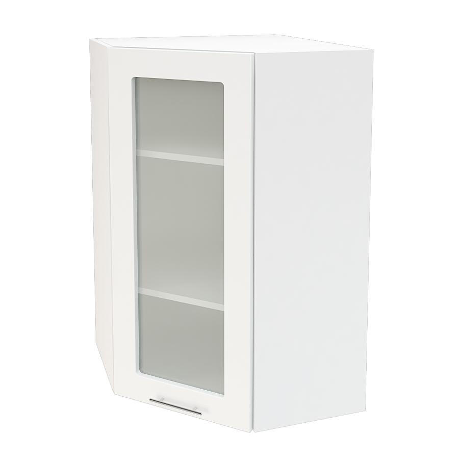 Шкаф верхний угловой со стеклом высокий ШВУС 599 ВАЛЕРИЯ 1 (Белый глянец) 590 мм