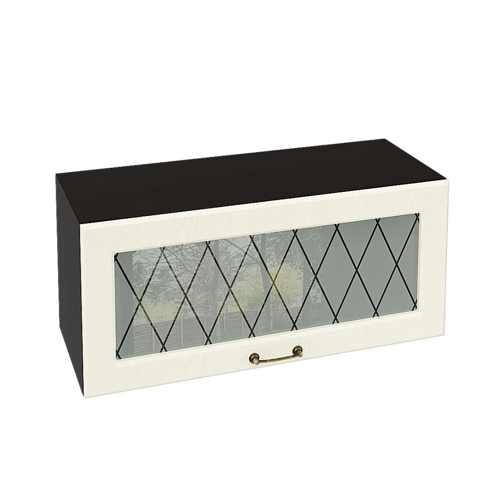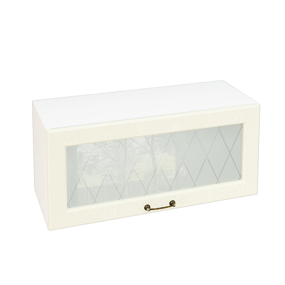 Шкаф верхний горизонтальный со стеклом ШВГС 800 НИЦЦА (Дуб фактурный Кремовый) 800 мм