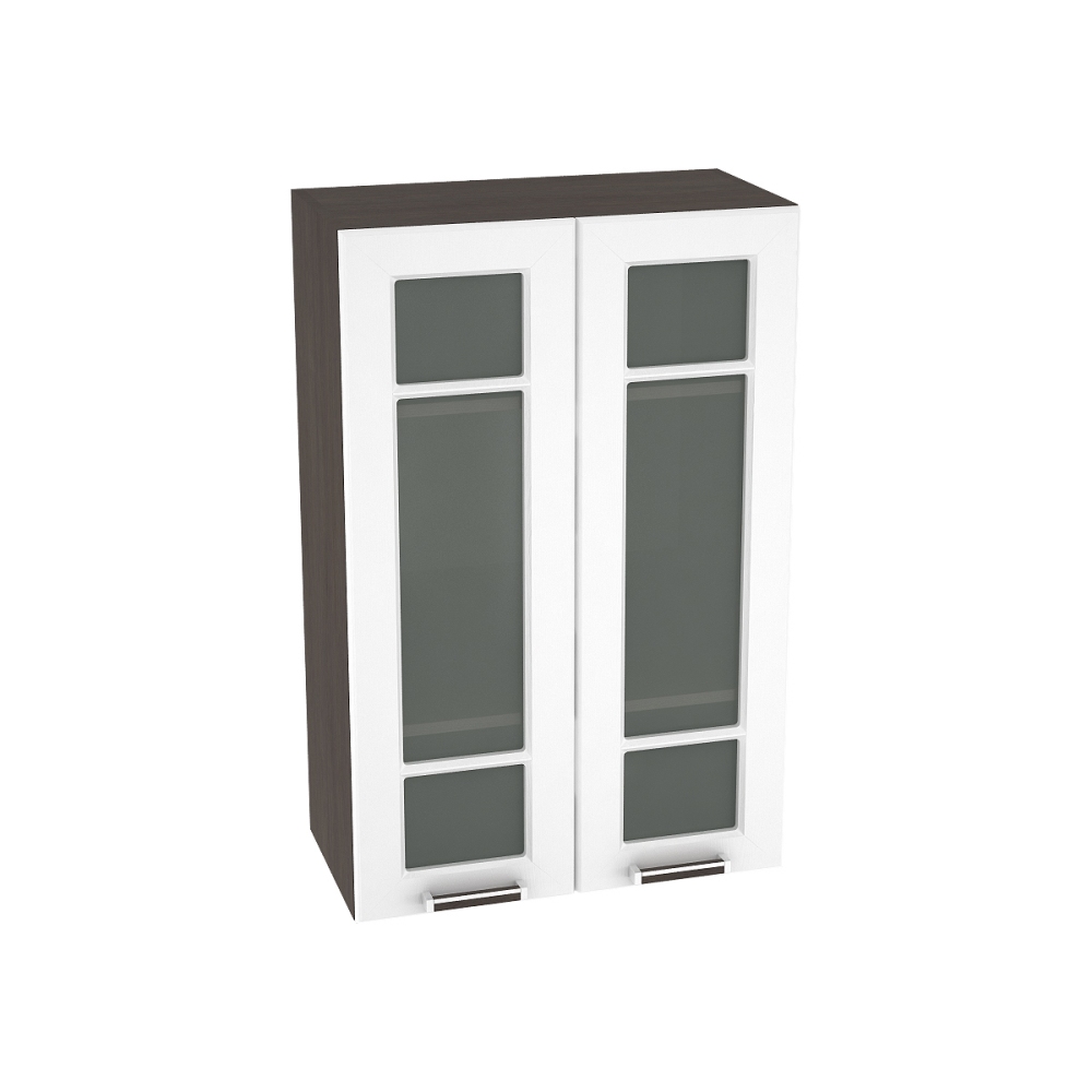Шкаф верхний со стеклом высокий ШВС 609 ПРАГА (Белое дерево) 600 мм