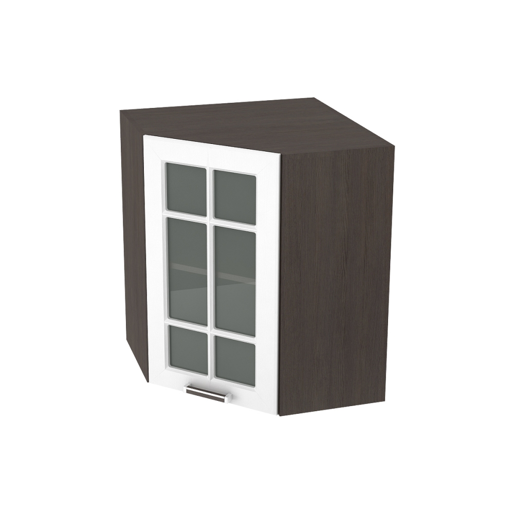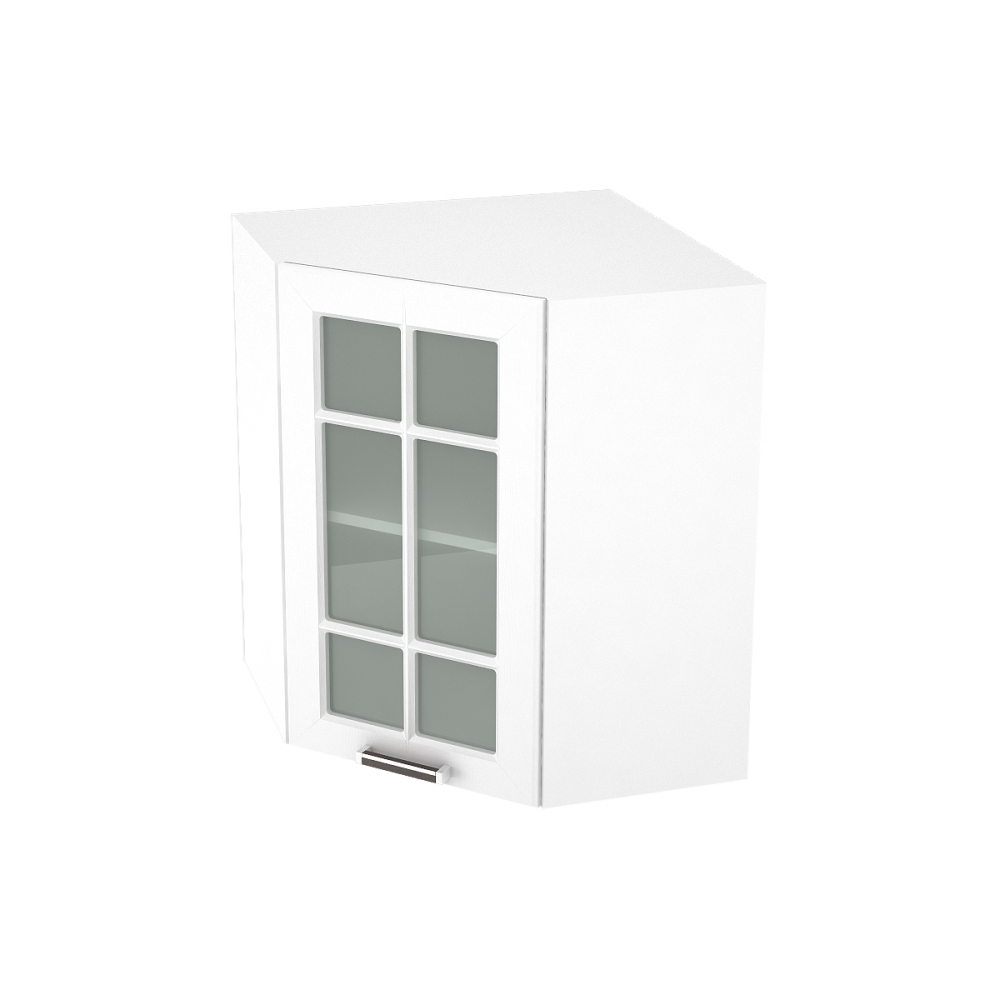 Шкаф верхний угловой со стеклом ШВУС 590 ПРАГА (Белое дерево) 590 мм