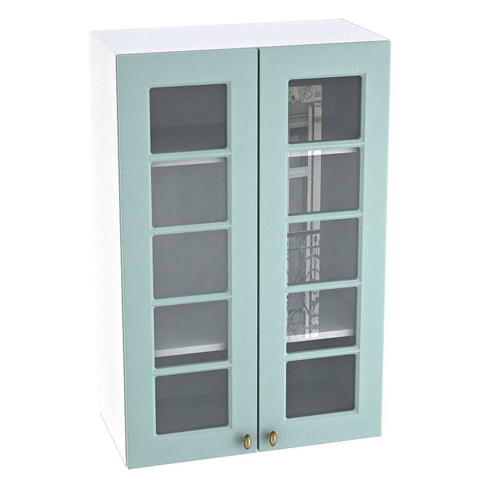 Шкаф верхний со стеклом высокий ШВС 609 ПРОВАНС (Голубой) 600 мм