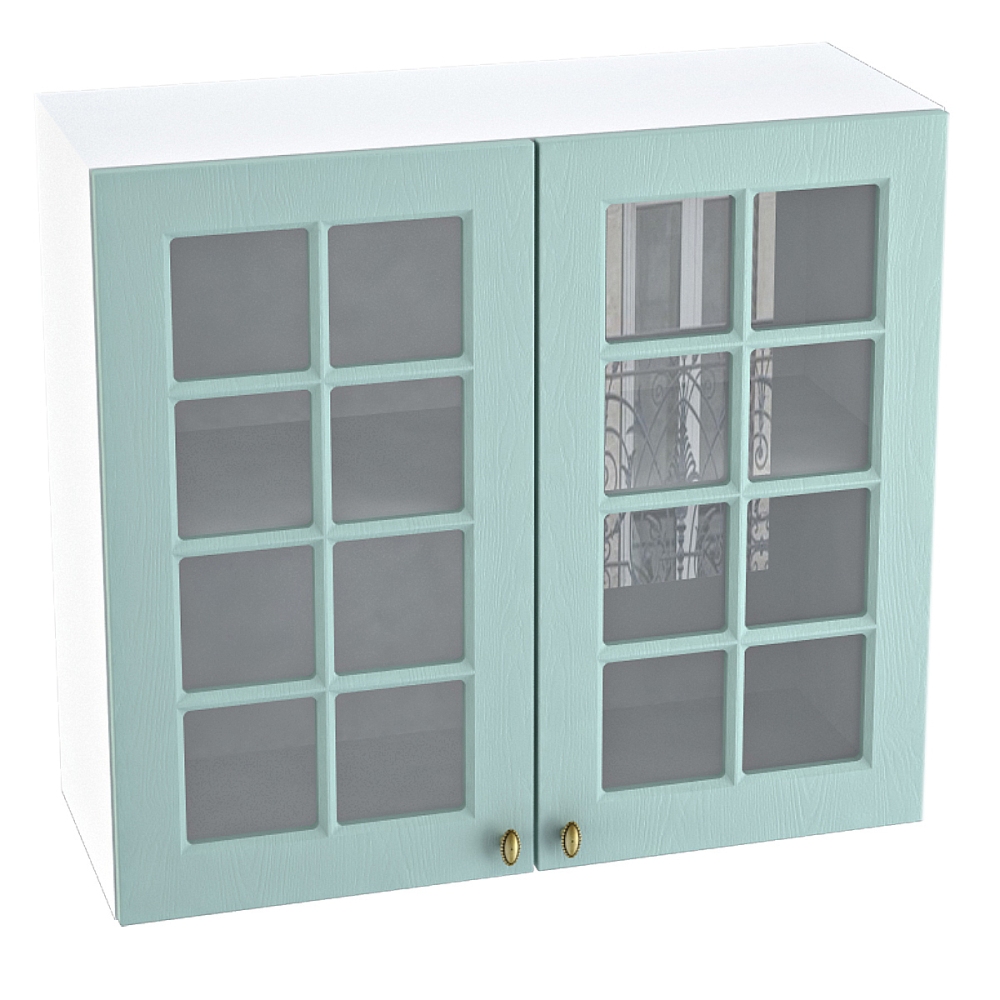 Шкаф верхний со стеклом ШВС 800 ПРОВАНС (Голубой) 800 мм