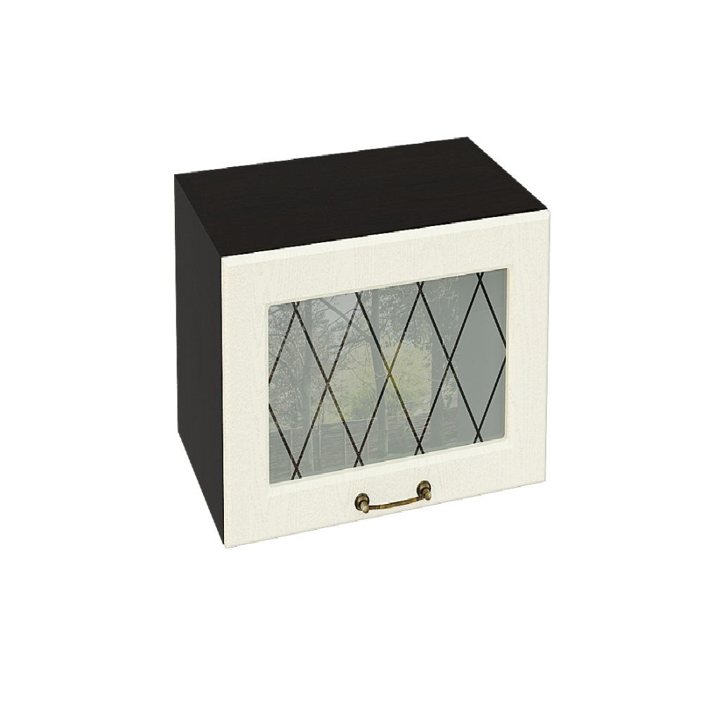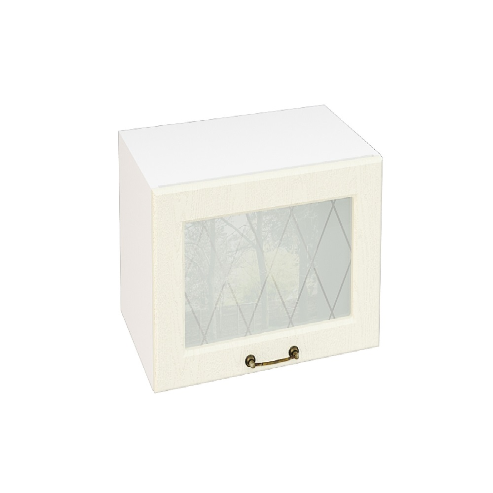 Шкаф верхний горизонтальный со стеклом высокий ШВГС 509 НИЦЦА (Дуб фактурный Кремовый) 500 мм