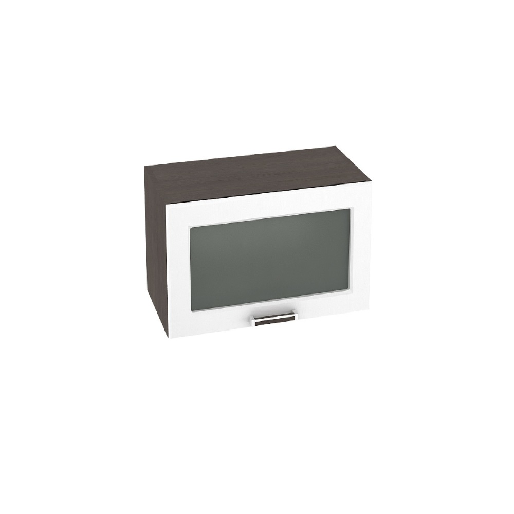 Шкаф верхний горизонтальный со стеклом высокий ШВГС 609 ПРАГА (Белое дерево) 600 мм
