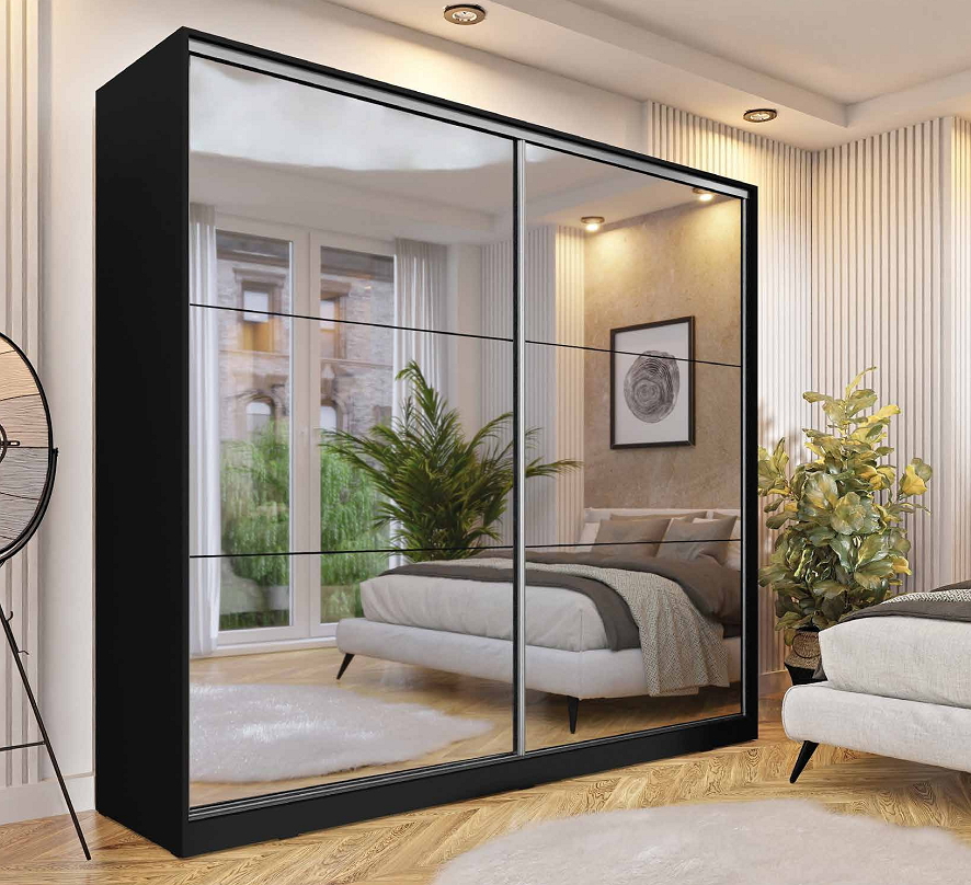 Шкаф-купе NEW UNIVERSAL 2-дверный с зеркалами (Черный/Зеркала) 24WUKK18
