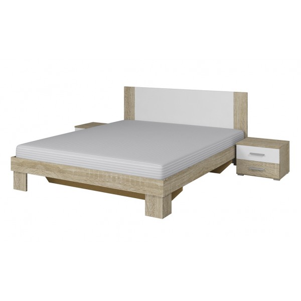 Кровать 1800 + 2 тумбочки прикроватные VERA (Дуб сонома светлый/Белый) 22FADH52