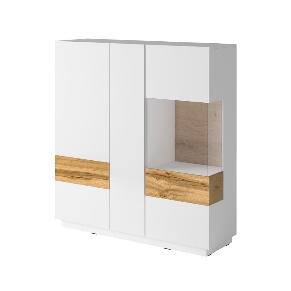 Комод высокий-3D typ 46 SILKE (Белый глянец/Дуб Вотан)