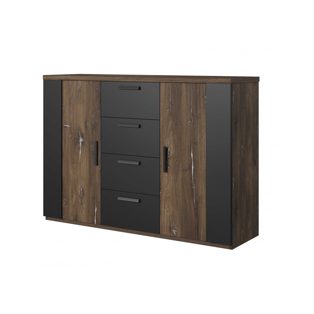 Комод 2 двери 4 ящика SIGMA (Дуб Флагстафф со стальной нитью/Черный матовый) 24FSLI26
