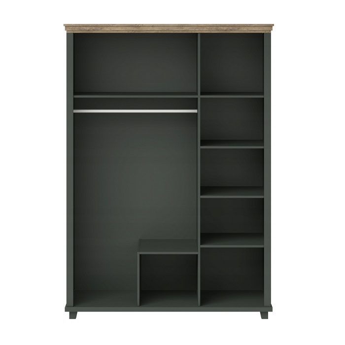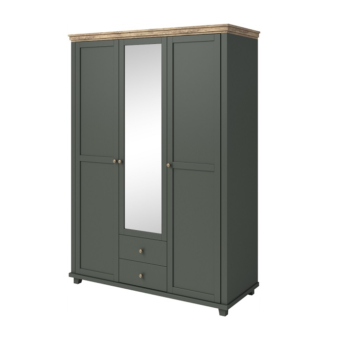 Шкаф 3-дверный с зеркалом EVORA (Зеленый/Дуб Лефкас темный) 24ZRJU19