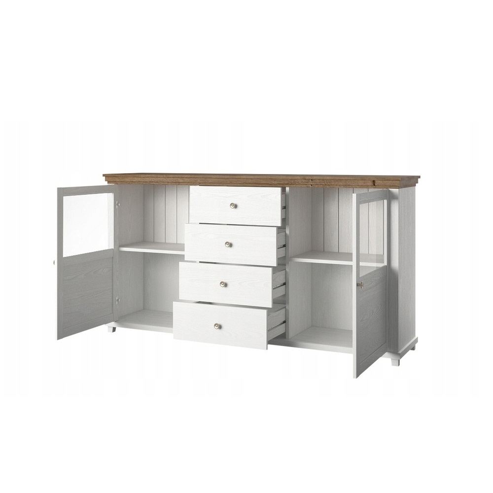 Комод 2 двери и 4 ящика EVORA (Ясень Абиско/Дуб Лефкас темный) 247DJU25