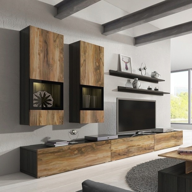 Стенка для гостиной BAROS (Атласный черный орех/Тачвуд) 24Z6BM10