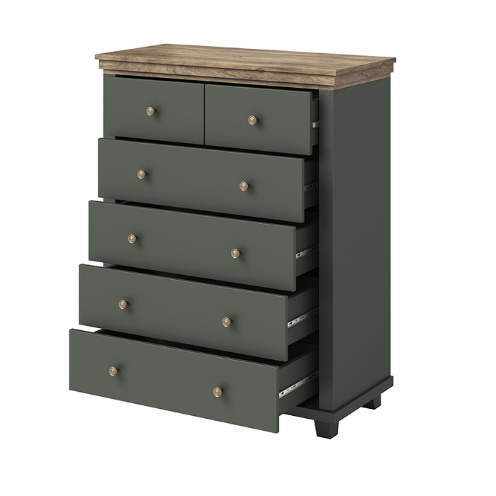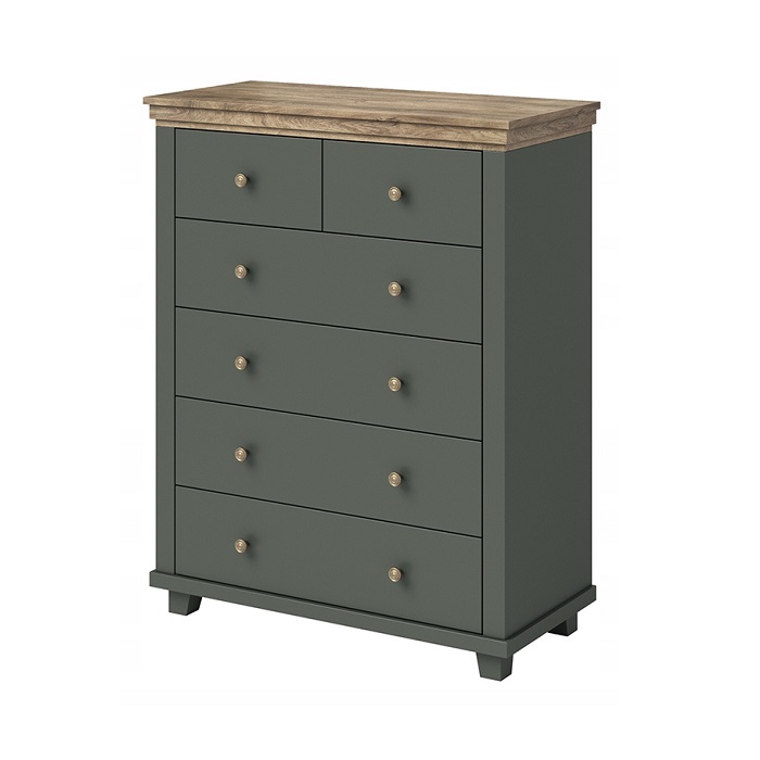 Комод с 6 ящиками EVORA (Зеленый/Дуб Лефкас темный) 24ZRJU45