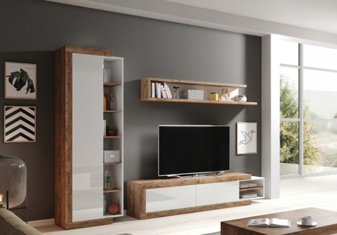 Комплект гостинной SINTRA (Дуб Самдал/Белый глянец)