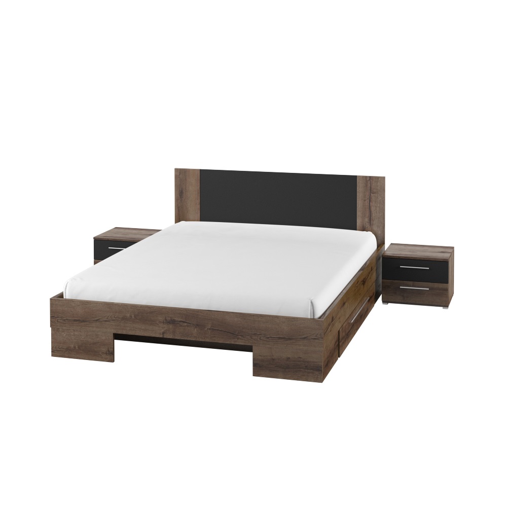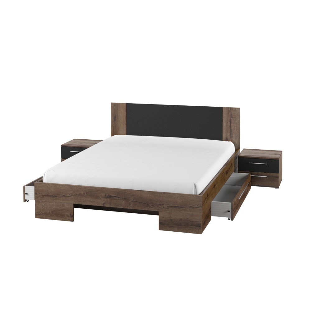 Кровать 1600 + тумбочки 2 шт. + 2 выдвижных ящика VERA (Дуб Монастырский/Черный) 22ZBDH81