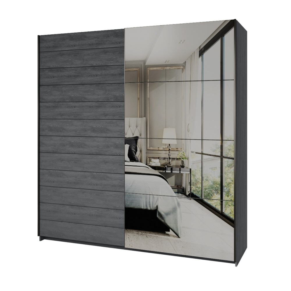 Шкаф-купе 2-дверный с зеркалом GALAXY (Дуб Карбон) 24CBEA67