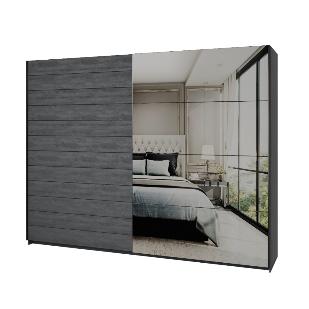 Шкаф-купе 2-дверный с зеркалом GALAXY (Дуб Карбон) 24CBEA69