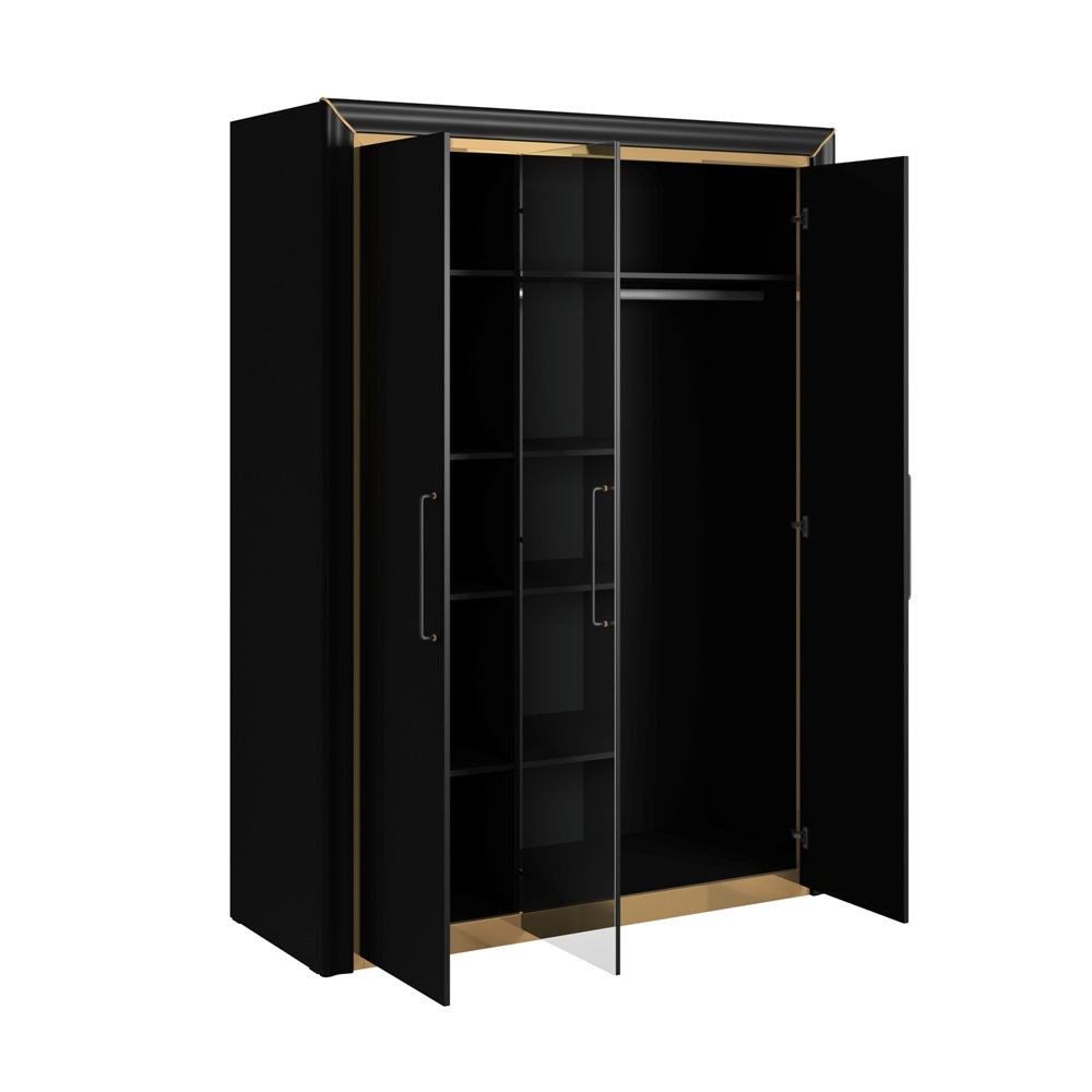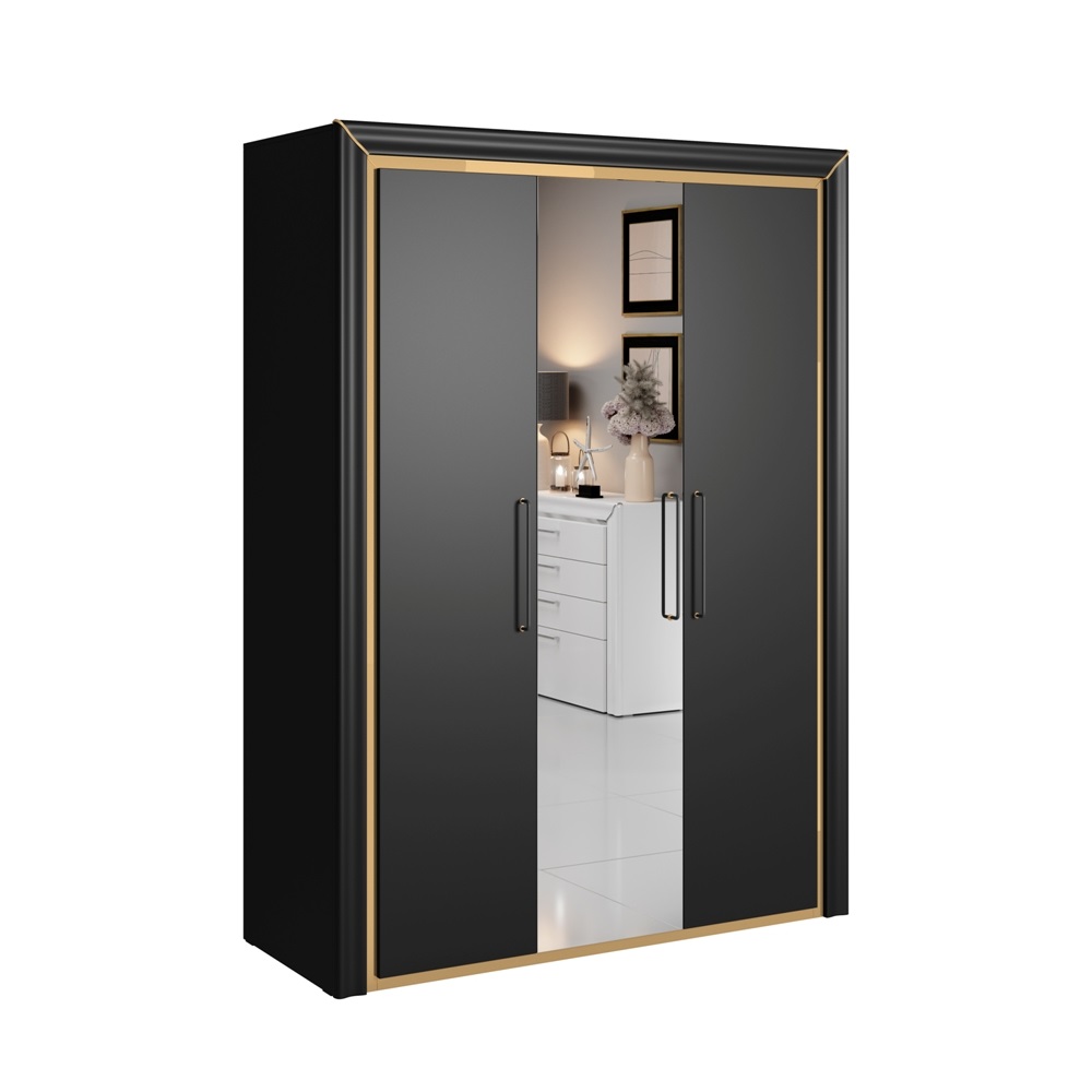 Шкаф 3-дверный с зеркалом ARNO (Черный матовый с золотом) 24W0LF19