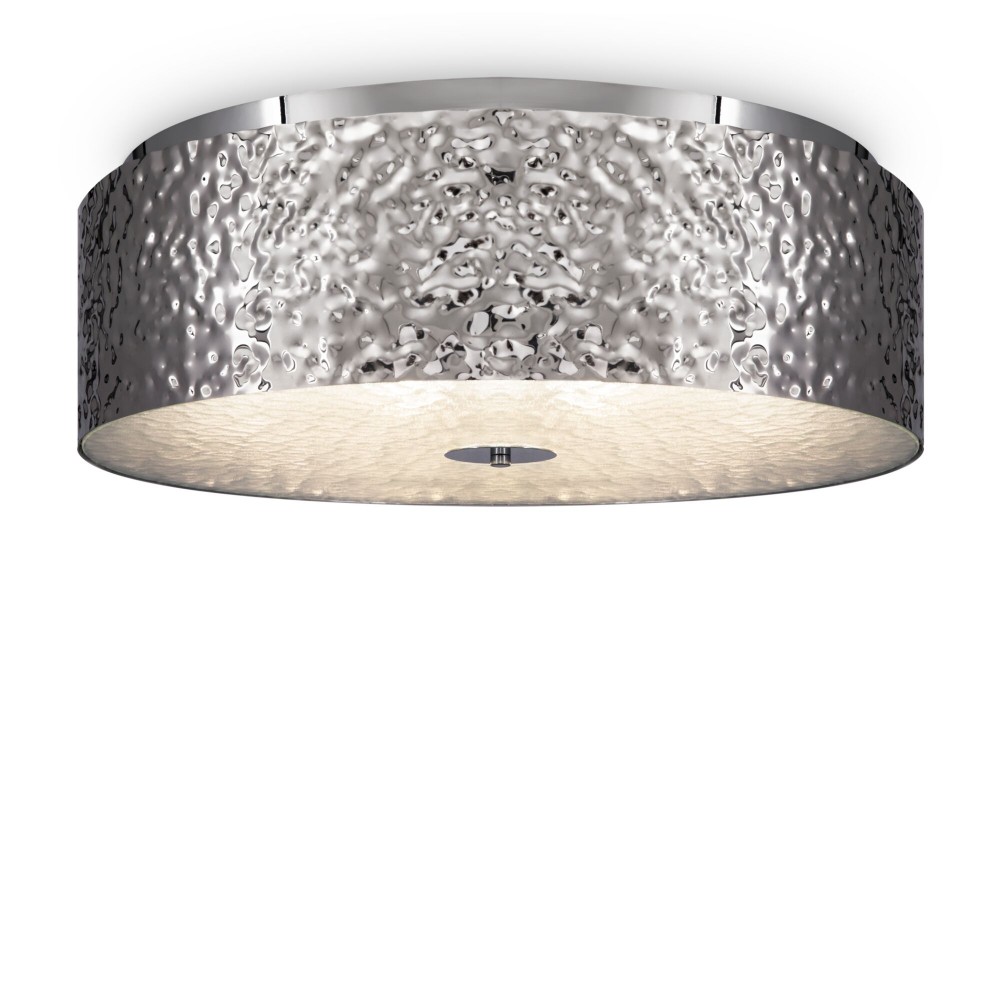 Главная характерная черта светильника Ripple — это металл, который с помощью чеканки приобрел особую фактуру. Его рифленая металлизированная поверхность создает эффект «рябь на воде», превращая модель в самостоятельный арт-объект, придавая динамичность интерьеру, буквально оживляя его. Дополнительного внимания требует стекло, которое обладает схожей текстурой. Его рифленая поверхность делает световой поток мягким и рассеянным. Серия Ripple включает потолочные светильники, подходящие для помещений с невысокими потолками.