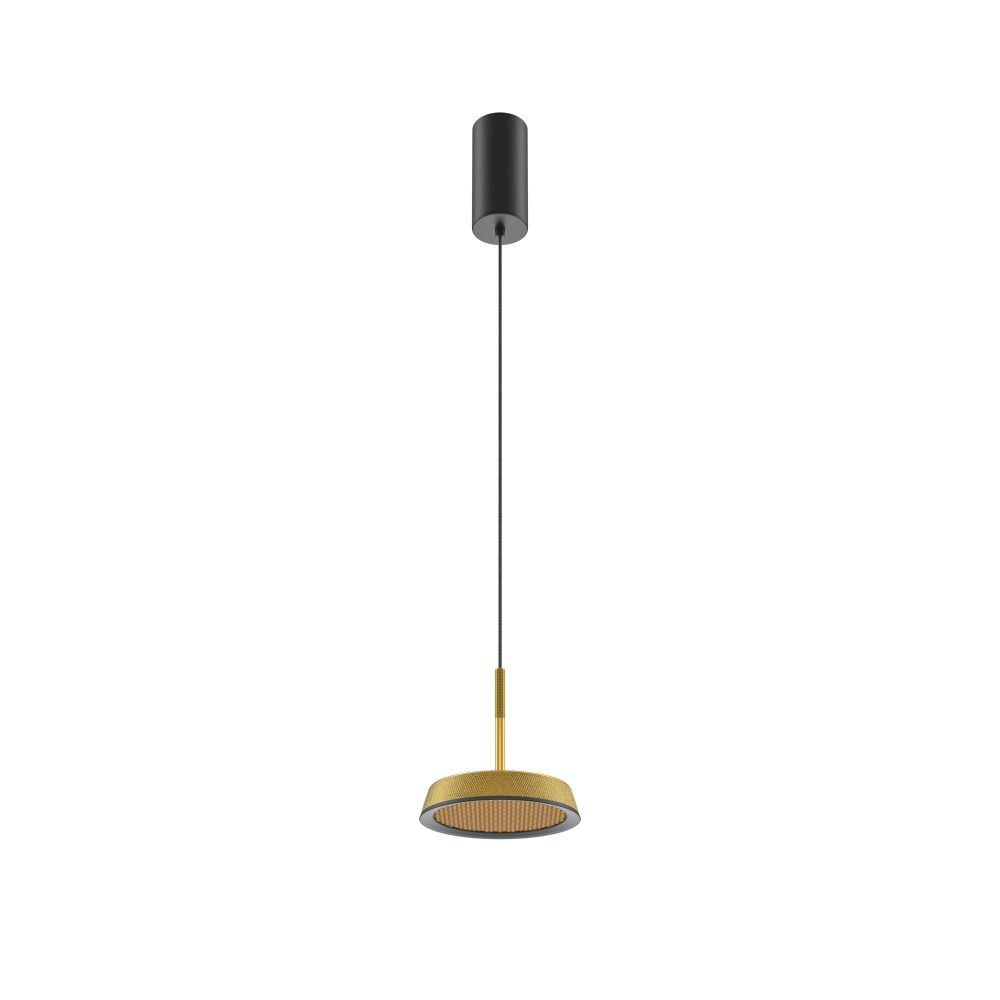 Металлический корпус, цветовая палитра - черный, белый, золото и терракотовый. Два вида плафонов: «таблетка» с графичным рельефом из ассиметричных линий; «таблетка» + идеально-гладкая металлическая «тарелка». Дизайн вдохновлен супрематической эстетикой. LED-источник света, цветовая температура - 3000К. Регулируемый провод - 3 метра.