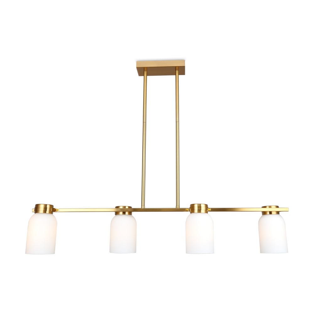 Арматура из металла. Цвет латунь. Плафоны из белого стекла новой необычной формы. Два варианта светильников — потолочные и бра. Подходит для помещений с низкими потолками. Источник света — лампа. Цоколь E14.