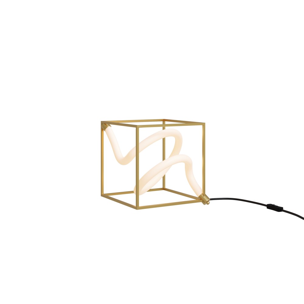 Металлическая арматура, цвет - латунь. Графичный силуэт. Источник света - гибкая неоновая трубка, расположенная внутри арматуры. Угол рассеивания — 120 градусов. Дизайн светильников подходит для интерьера в стиле лофт, а также индустриального стиля. Регулируемый провод подвесного светильника — 3 м.