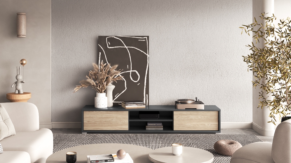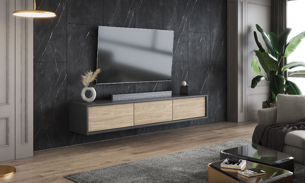 Тумбы под ТВ FRIDA (Антрацит/Промасленный дуб) Helvetia