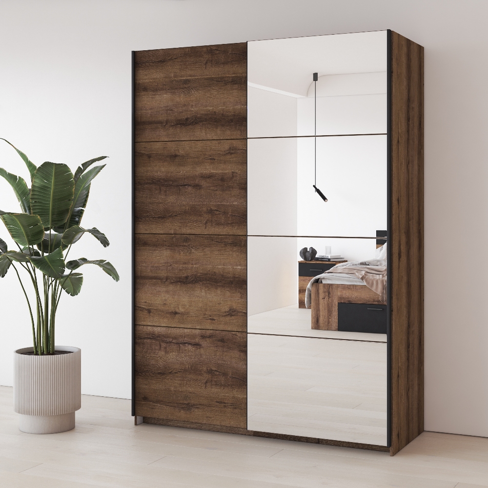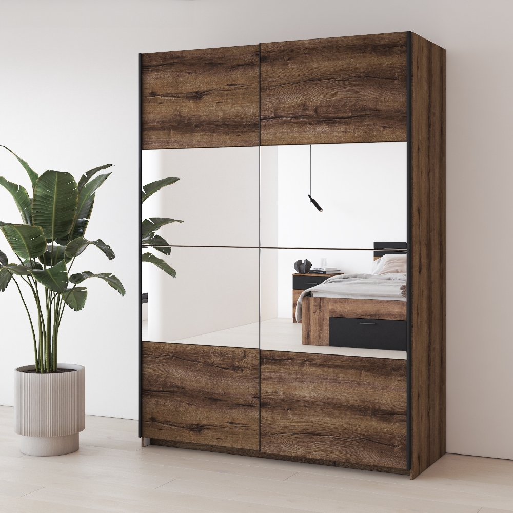 Шкаф-купе 2-дверный с зеркалом BETA (Дуб монастери-Черный) 22ZB1655