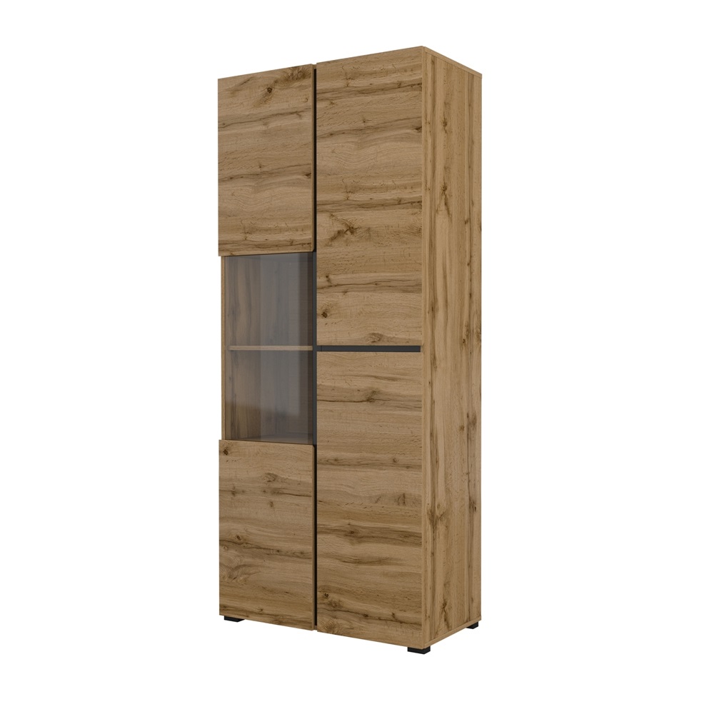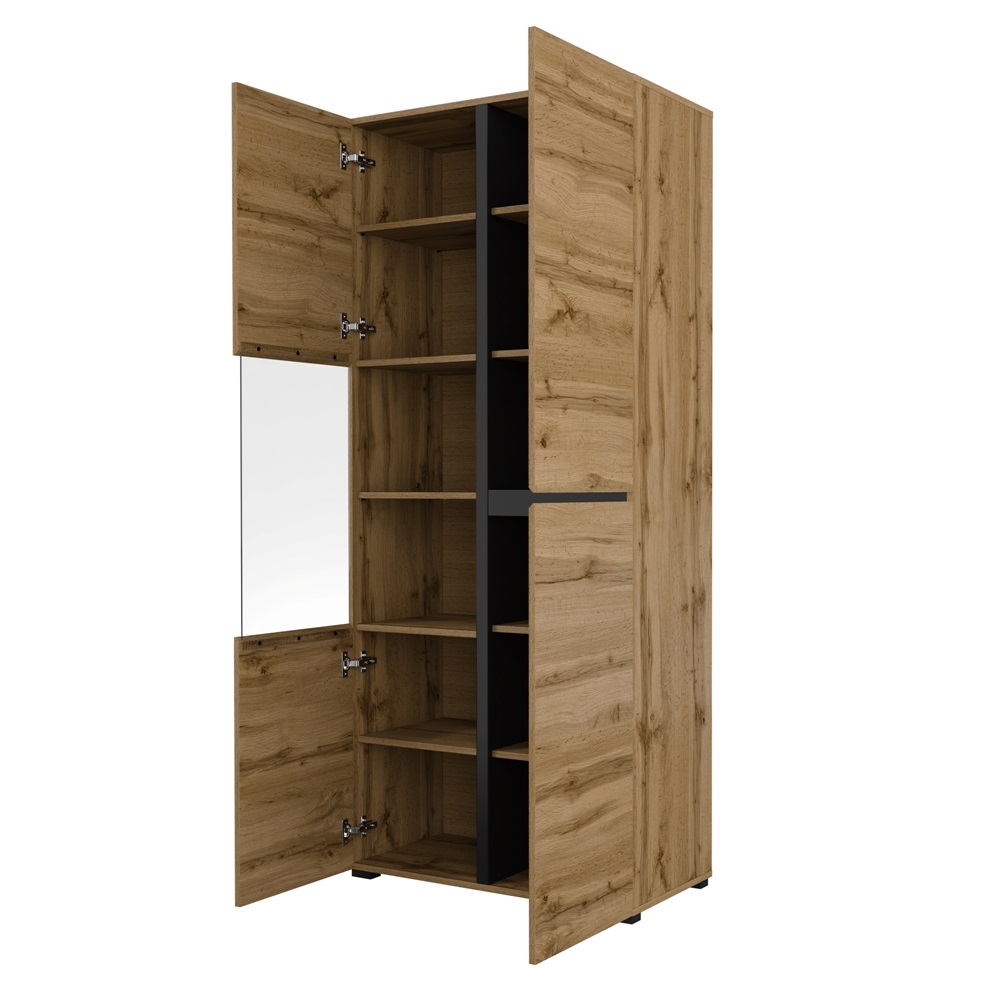 Витрина с 3 дверцами (1 стеклянная) CROSS (Дуб Вотан/Черный) 24N6MY12