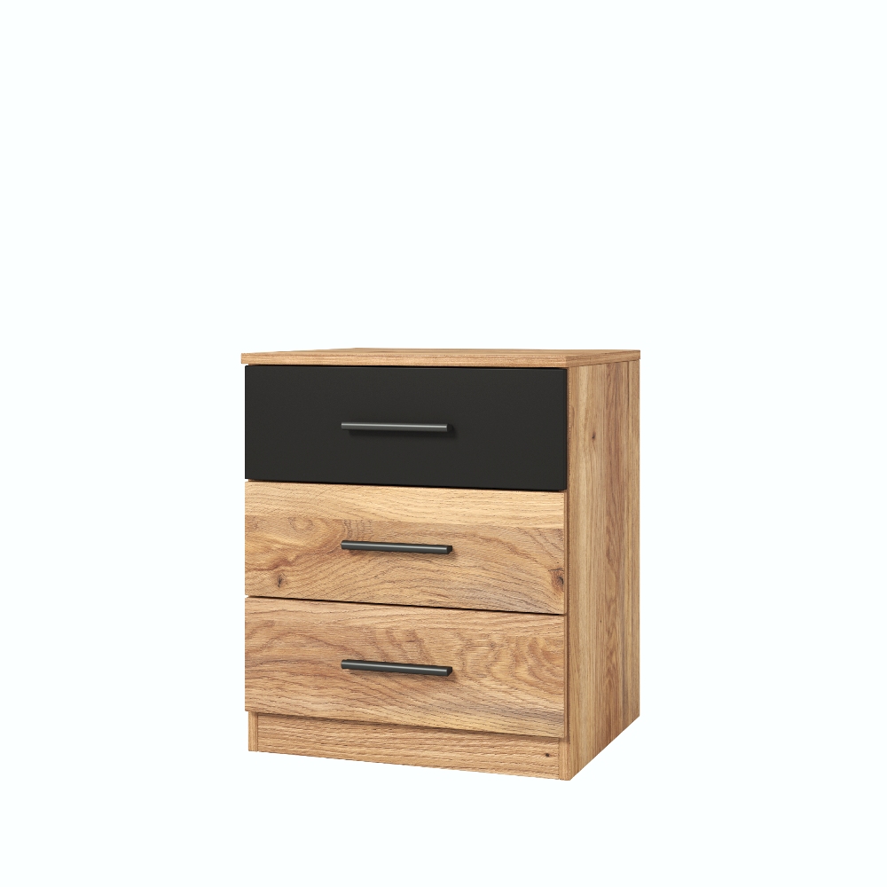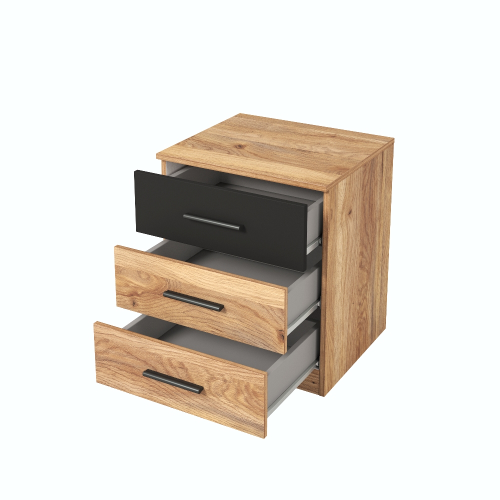 Тумба прикроватная 3 ящика BETA (Дуб Маувелла-Черный) 22MW1622