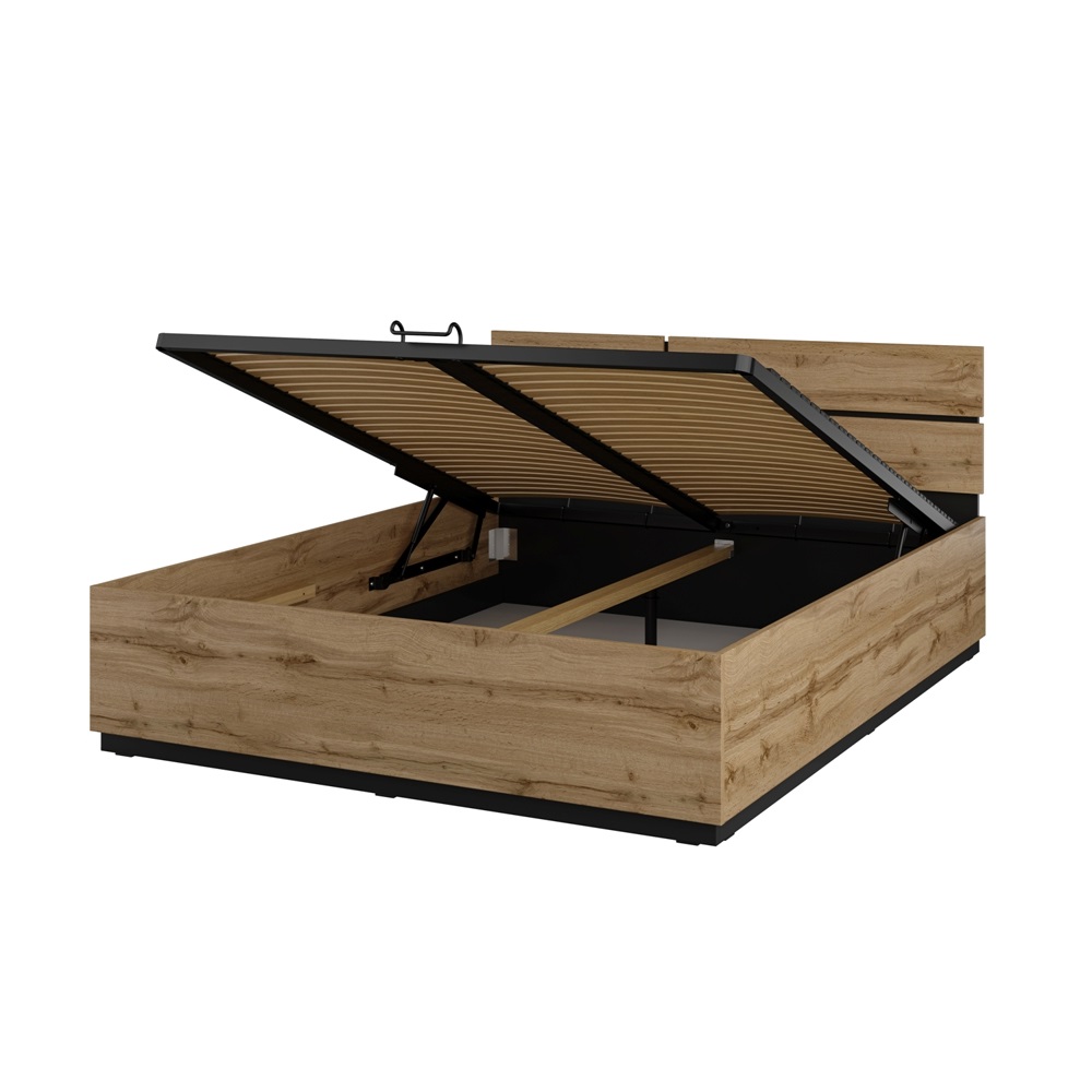 Кровать 1600 с ортопедическим основанием и подъемным механизмом CROSS S (Дуб Вотан/Черный) 24N6MY51