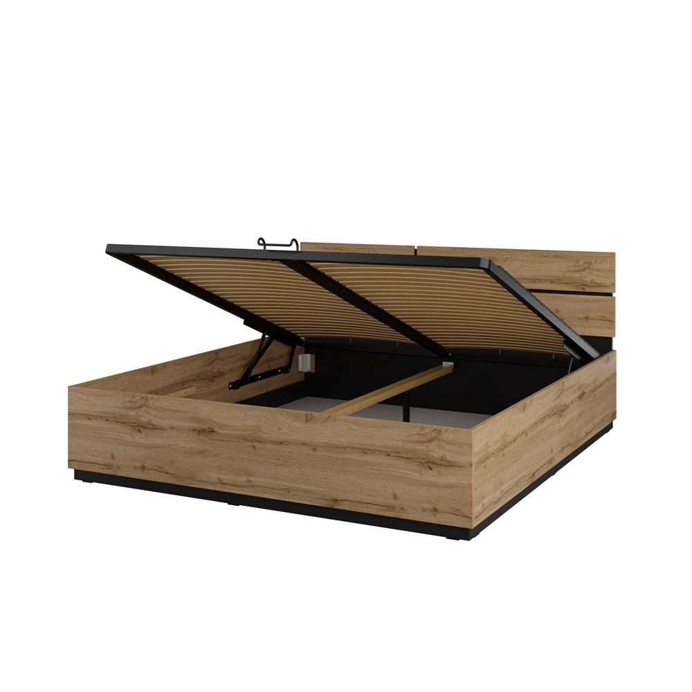 Кровать 1800 с ортопедическим основанием и подъемным механизмом CROSS S (Дуб Вотан/Черный) 24N6MY52