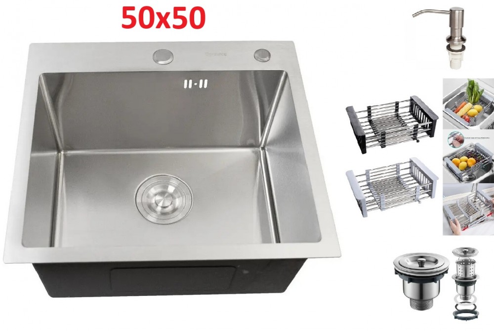 Кухонная врезная мойка Grassi (50X50) никель