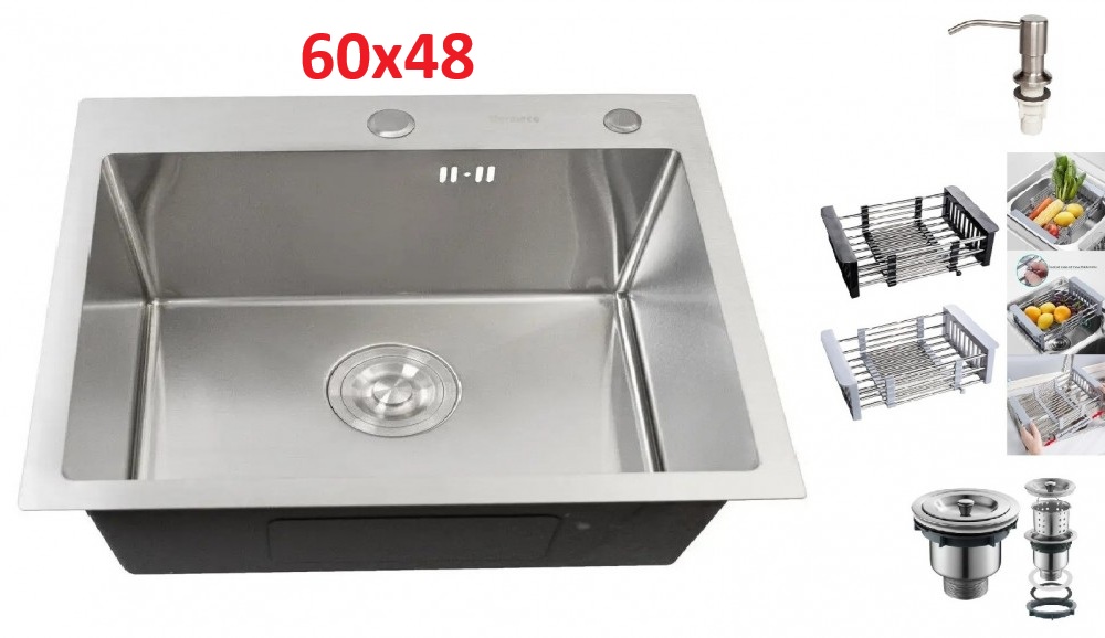 Кухонная врезная мойка Hans Coopper (60X48) никель