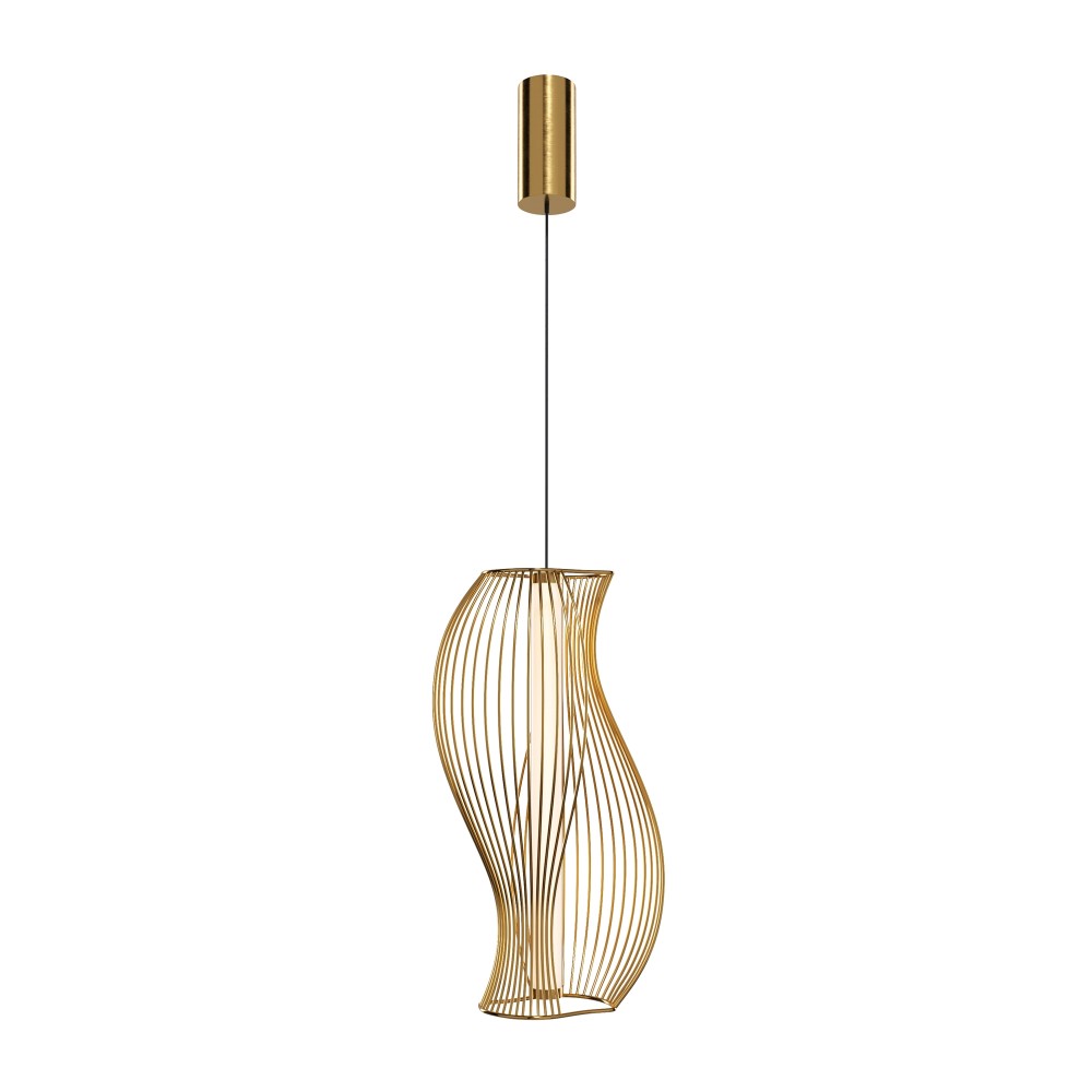 Два цветовых решения: черный и латунь. Абажуры из проволоки в асимметричном исполнении. Оригинальный дизайн, вдохновленный силуэтами античных амфор. Центральный LED-источник света с матовым рассеивателем. Регулируемая высота подвеса и провод длиной 3 метра. Возможность создания композиций.