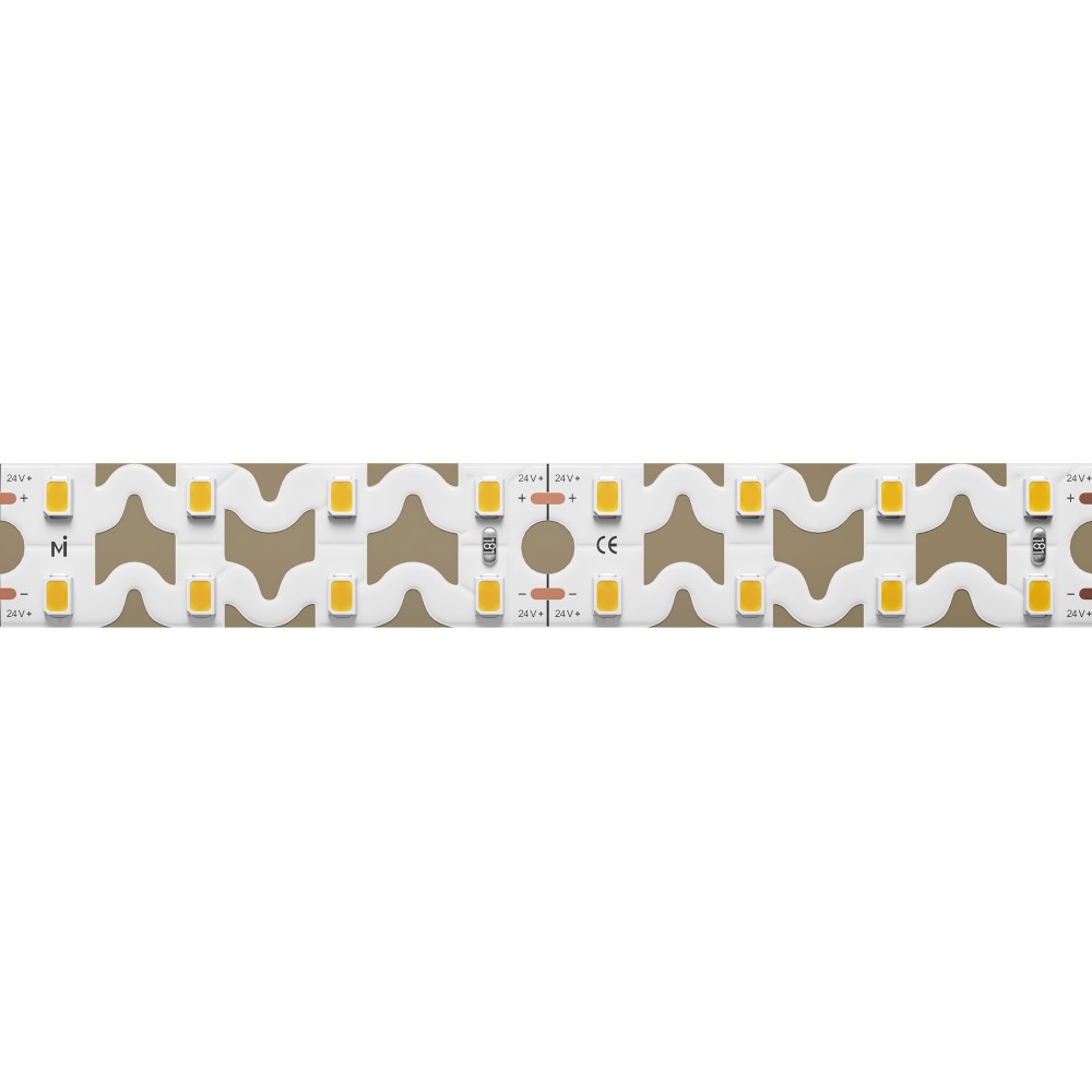 Лента с изгибом в плоскости мощностью 9.6 Вт/м (48 Вт на 5 м). Цветовая температура - 3000К и 4000К в зависимости от выбранной модели. Плотность светодиодов — 120 шт/м (600 шт на 5 м). Размер — 6х5000 мм, кратность реза — 50 мм. Индекс цветопередачи >90Ra. Угол рассеивания 120°. Рабочее напряжение 24 В. Для создания световых линий с возможностью включения белого цвета в декоративной подсветке потолочных ниш. Идеальное решение для подсветки сложных рекламных конструкций нестандартной формы.