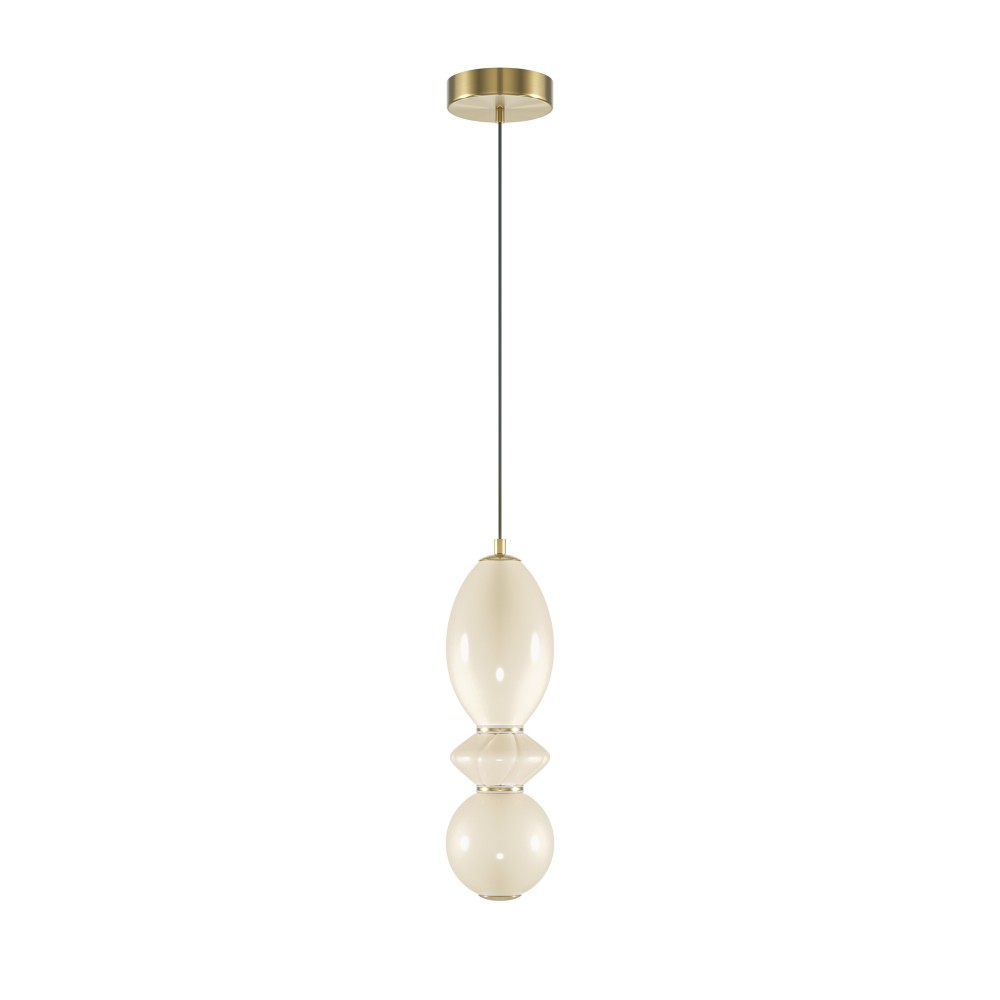Светильники Brosche подобно броши завершают образ интерьера. В серии представлены подвесные светильники, бра и настольная лампа. Декоративная керамическая бусина покрыта глазурью: кремово-белая (RAL 9001) или серебристо-серая (RAL 7001). Металлическая арматура цвета сатинированной латуни; белые плафоны из глянцевого стекла. Мягкое рассеивание света (3000K) от встроенного LED-источника привносит уют. Светильники Brosche подходят для зонирования пространства в спальнях, гостиных и столовых.