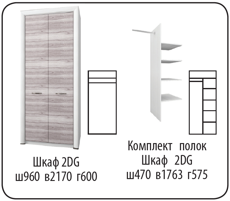 2DG თაროების ნაკრები 2DG კაბინეტის შიდა შევსებისთვის.