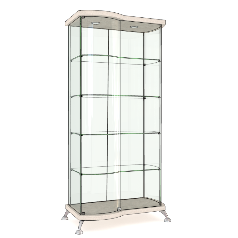 მართკუთხა ვიტრინა მოხრილი კარით და გვერდითი პანელით As64.09-01 ლამინატიზომები: სიგანე - 889 მმ
