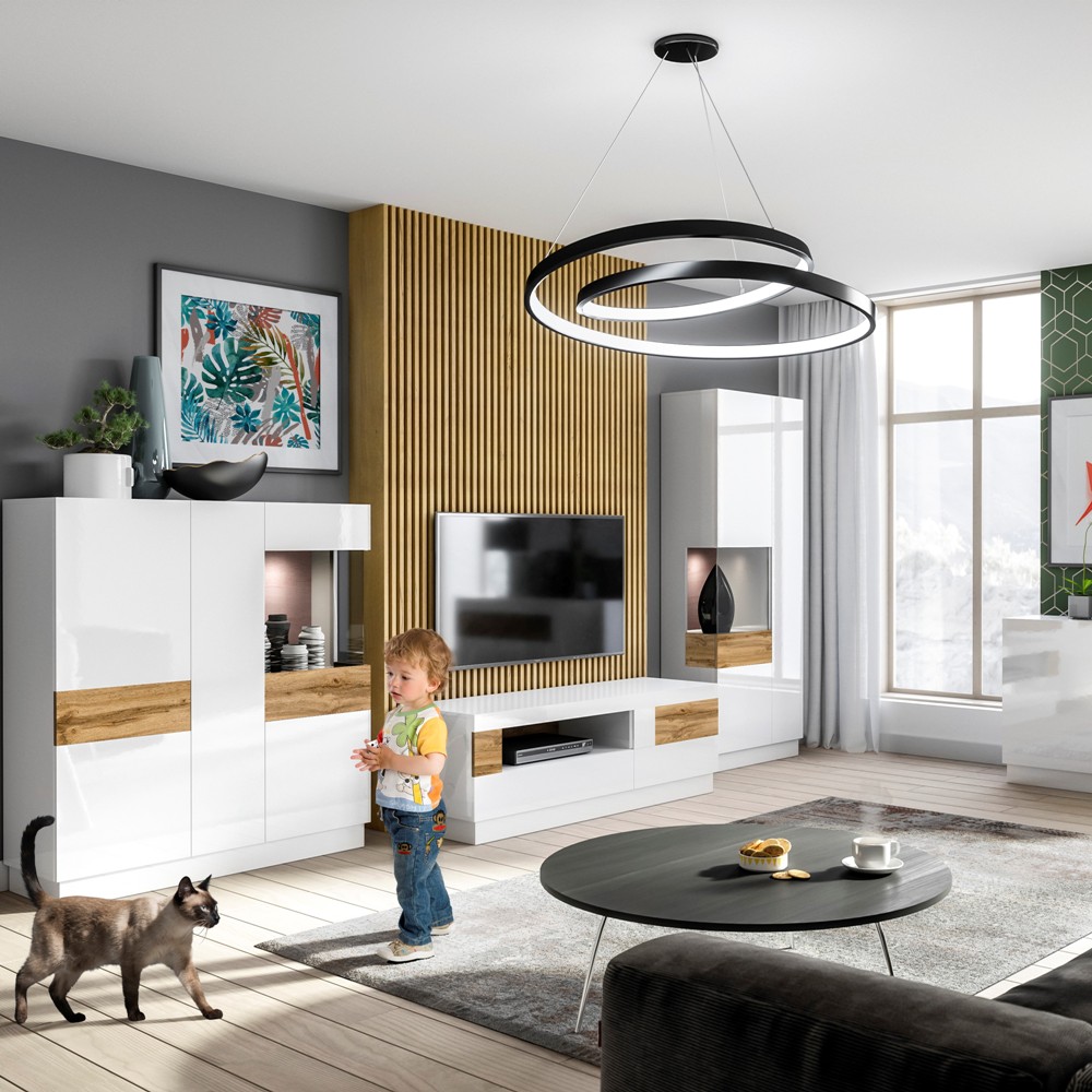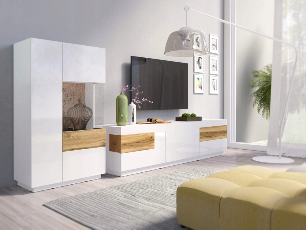 მისაღები ოთახიSILKE (თეთრი პრიალა/მუხის ვოტანი) ჰელვეტია
