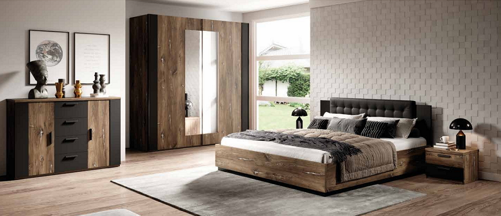 საძინებელი SIGMA (Flagstaff Oak ფოლადის ძაფით/შავი მქრქალი) Helvetia