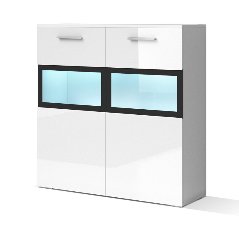 ფერი ფასადი: თეთრი პრიალა + შავი ჩარჩოები