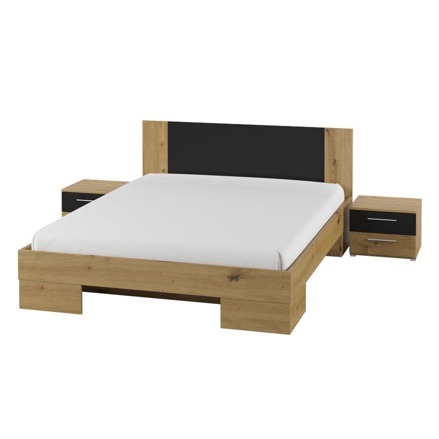 საწოლი 1800 + საწოლის მაგიდები 2 ც. ტიპი 52 VERA (ხელოსნური მუხა/შავი)