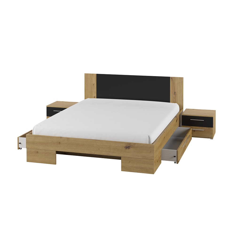 საწოლი 1600 + საწოლის მაგიდები 2 ც. + 2 უჯრა VERA (Artisan Oak/Black) 22RCDH81