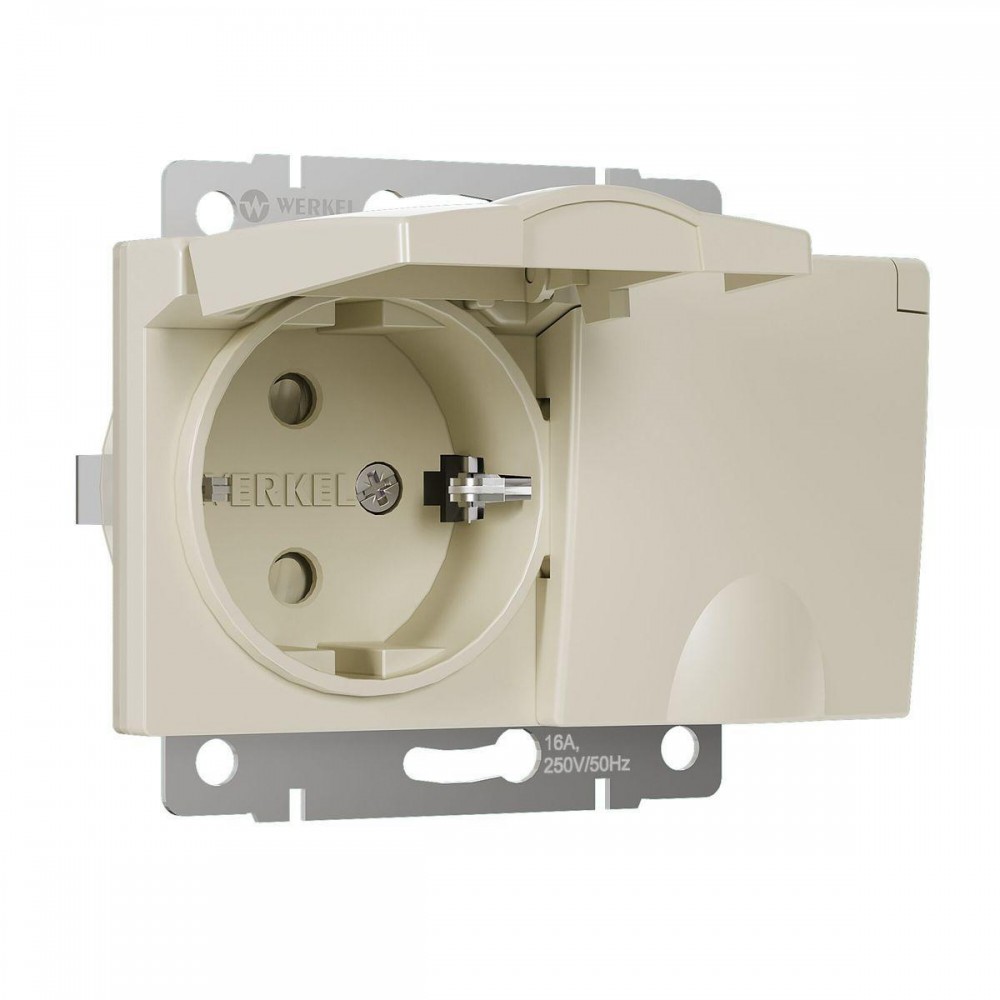 სოკეტი ორმაგი წყალგაუმტარი დამიწებით დამცავი საფარით და საკეტებით Werkel სპილოს ძვლისფერი W1172203 4690389178078