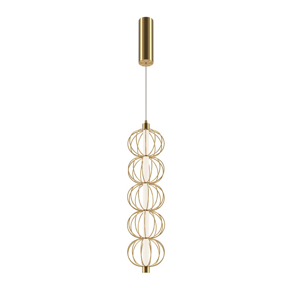 Арматура - металл, цвет - золото. Декоративные проволочные плафоны-сферы - ручная работа. Горизонтальные подвесы в двух вариатах монтажа - накладном и скрытом. Све товой элемент - силиконоваая трубка с LED-источником. Цветовая температура 3000К.