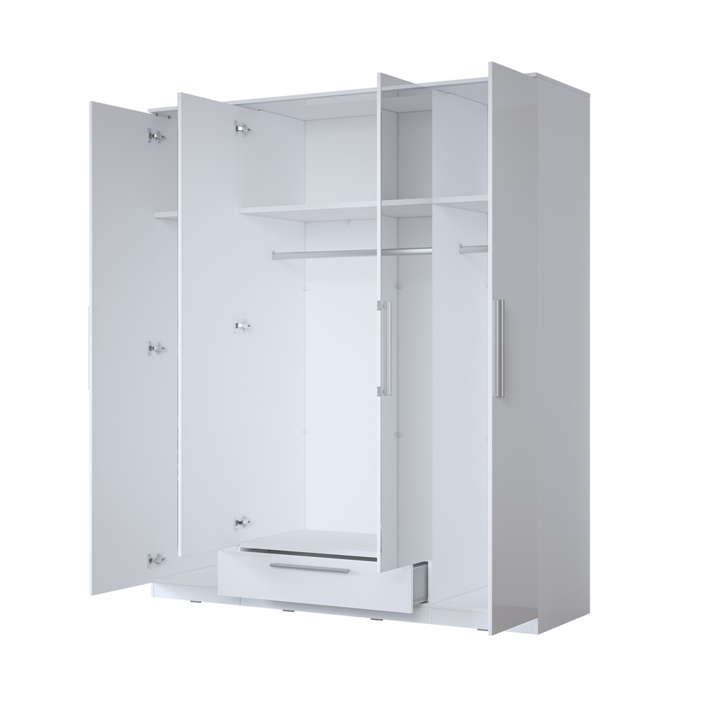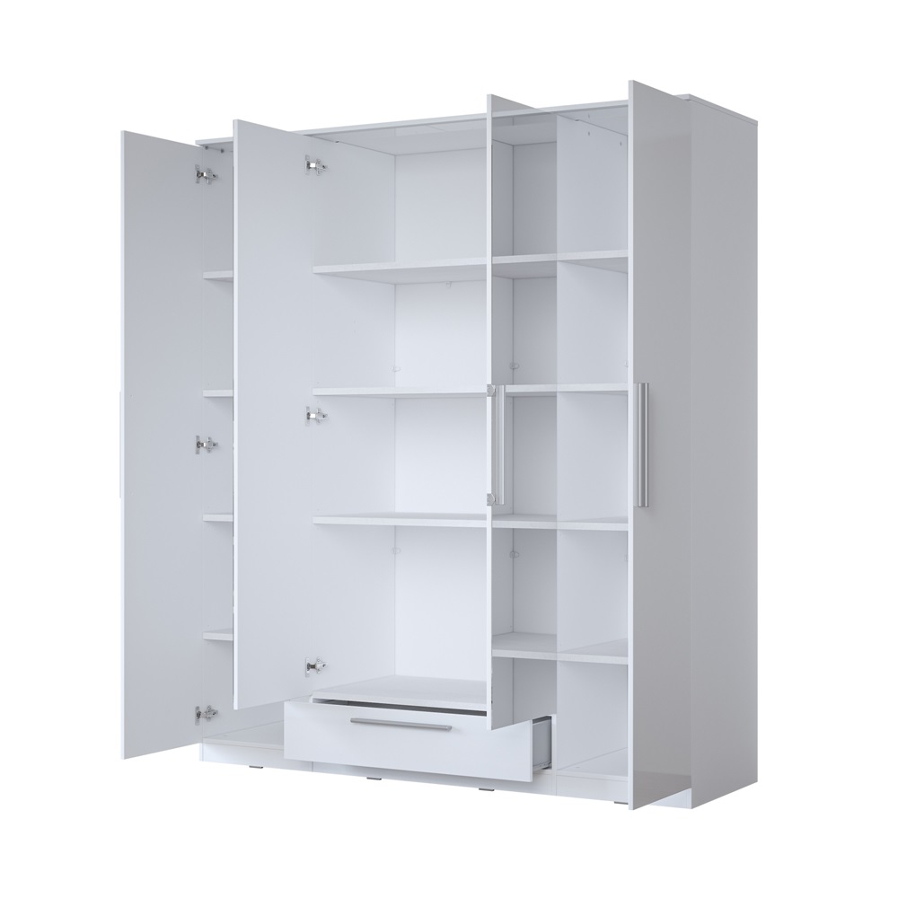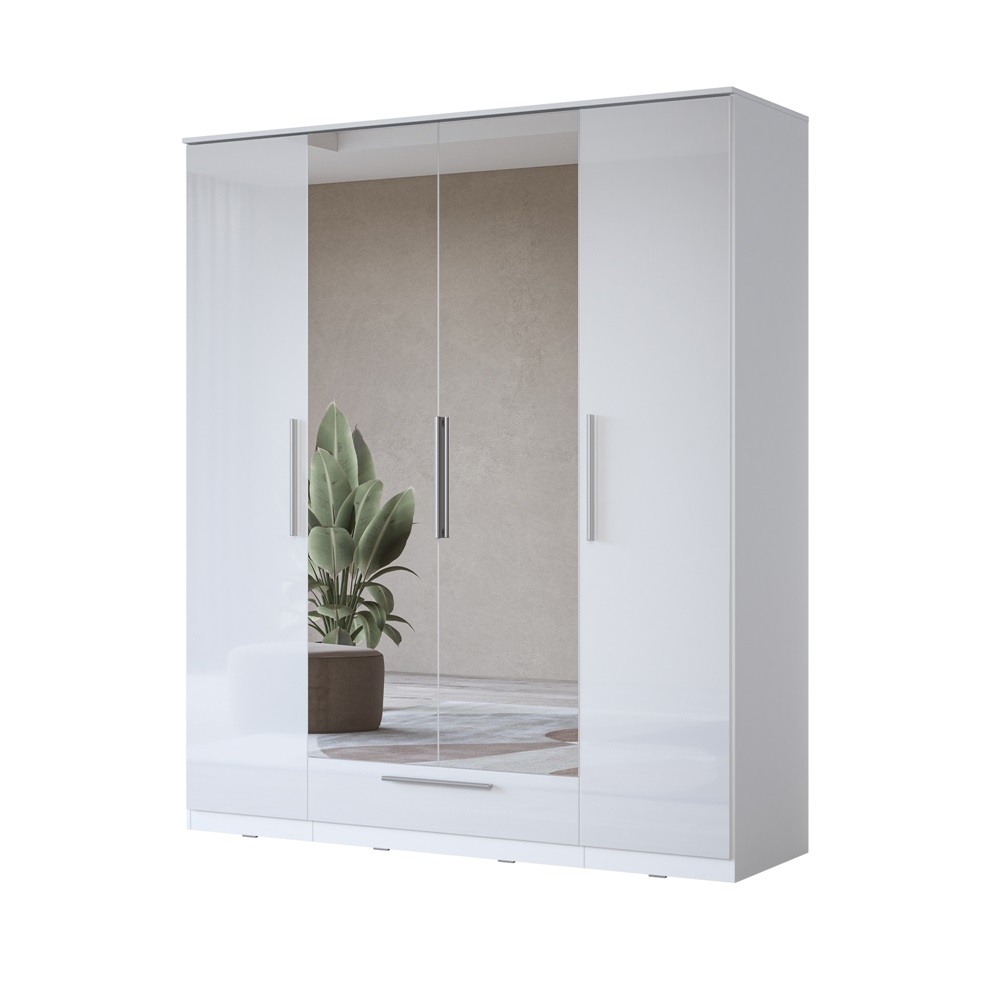 კაბინეტი 4-კარიანი 1 უჯრით (2 სარკე) RGB განათებით ინდოეთი (თეთრი/თეთრი სიპრიალის) 2497DE20