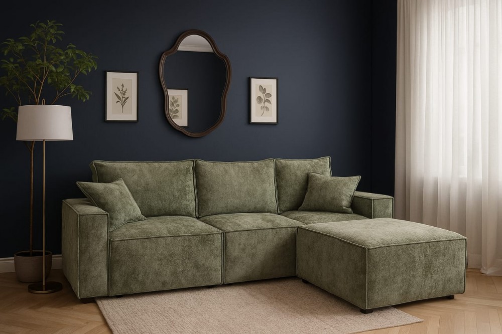 სწორი ჩამონგრეული დივანი პუფით ზომა: 2700x750x1800 მმკარკასი -რკინა, მაღალი ხარისხის შენახვის ადგილი და ძილის დასაკეცი მექანიზმი შეიძლება გაკეთდეს საჭირო ზომით შეკვეთისთვის, აგრეთვე ქსოვილისა და წესდების ფერის ტექსტურა, იგი მზადდება 10-14 დღის განმავლობაში შეკვეთისთვის