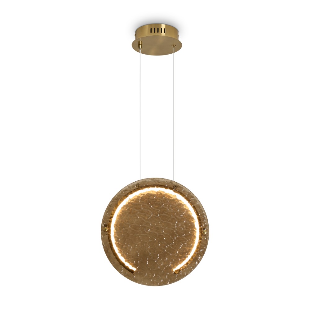 Стеклянные подвесные светильники Lunar с рельефным стеклом в двух цветовых вариантах: коньячном, белом матовым и прозрачным. Две формы плафонов: горизонтальный вытянутый и круглый, напоминающий очертания луны. Арматура — металл латунного цвета. Источник света - LED 3000 K. Дизайн сочетает современные формы с традиционными материалами, создавая эффектное освещение. Рельефное стекло добавляет интересную игру света и тени.