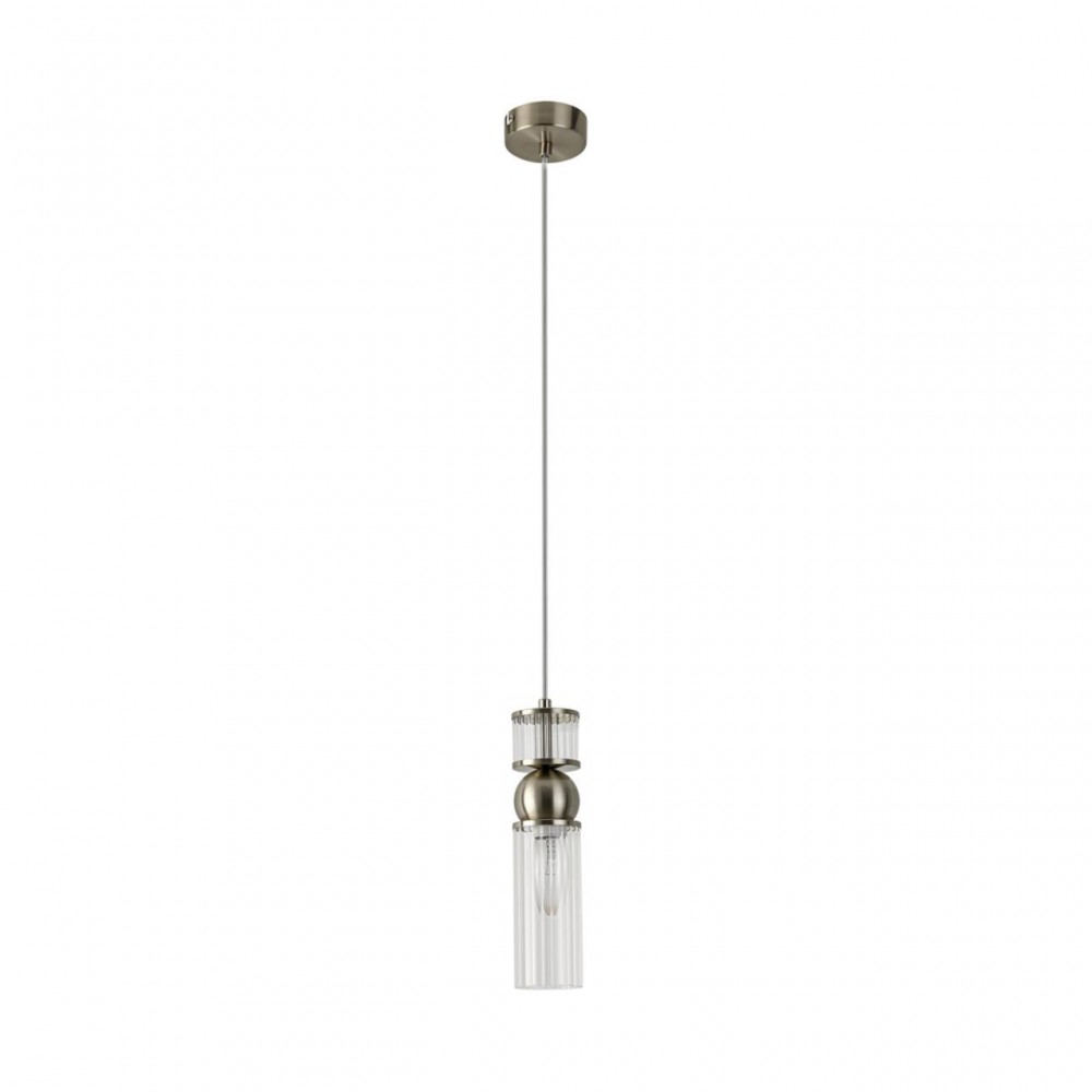 8277/1A მოდერნი ატლასის ნიკელი/გამჭვირვალე, ლითონის/მინის სუსპენზია E14 1*40W 220V დენვერი